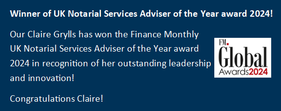 (June 2024) We are excited that Claire Grylls has been shortlisted for the Finance Monthly Global Awards 2024 for her success as a Notary! We wish her all the best for the Awards announced later this month…